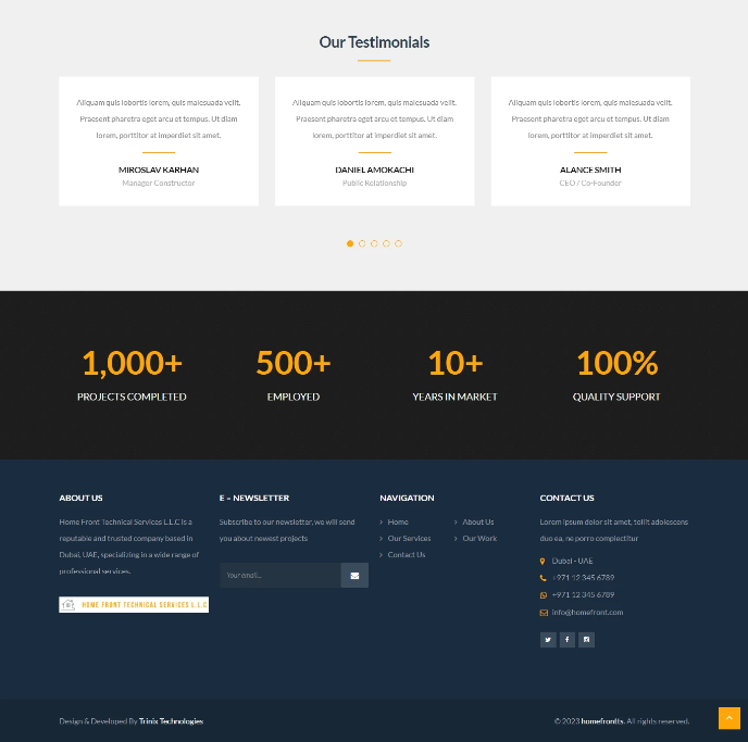 The platform positions Home Front Technical Services L.L.C as a dependable and established service provider in the UAE market, strengthening their online presence and client acquisition potential.