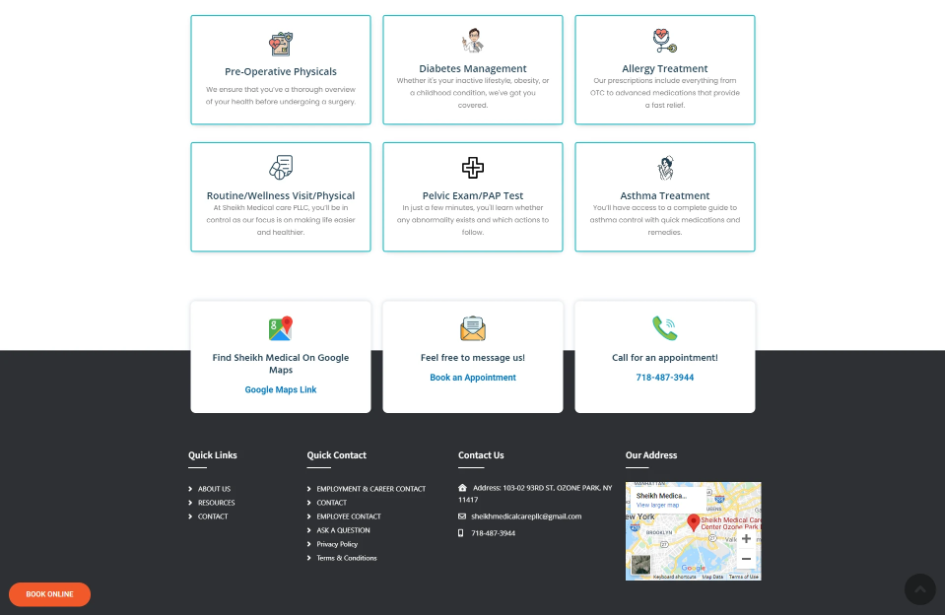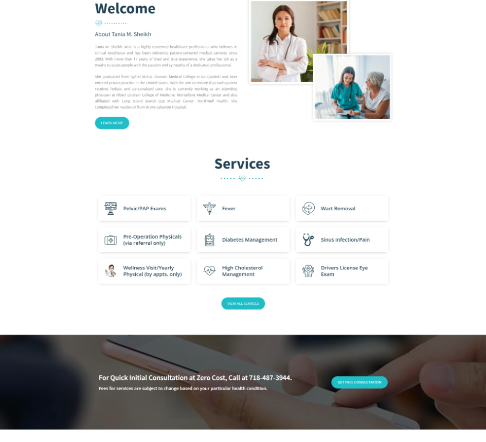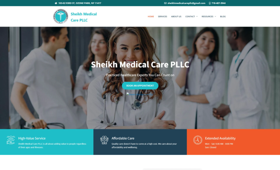 Sheikh Medical Care PLLC is a patient-focused healthcare clinic providing primary care services including wellness visits, chronic disease management, physical exams, and specialized treatments. The objective was to create a clean, trustworthy, and informative medical website that builds patient confidence while making appointment booking simple and accessible.